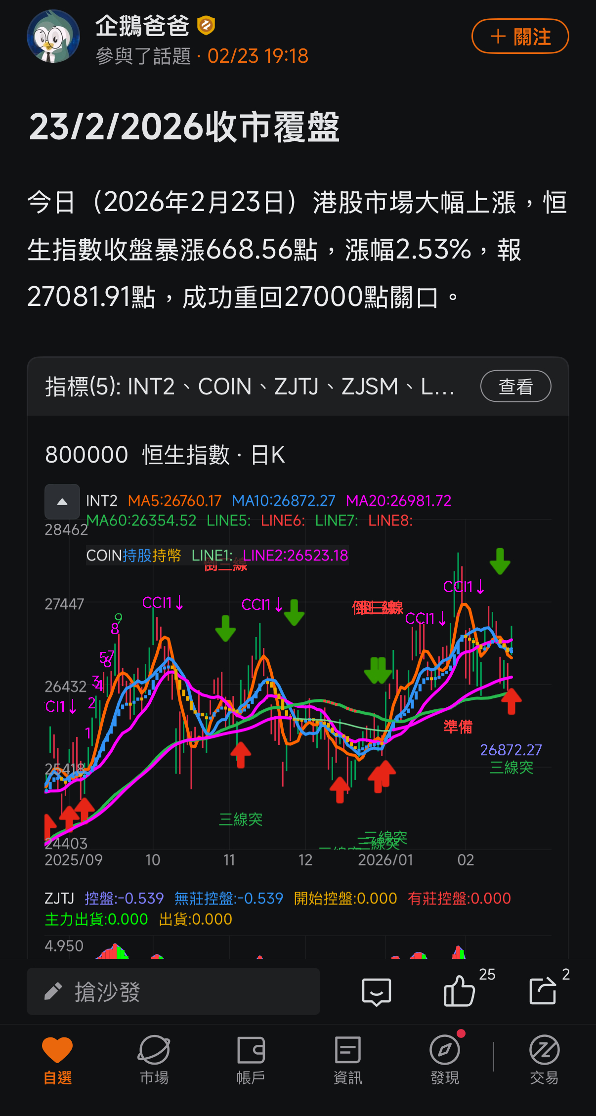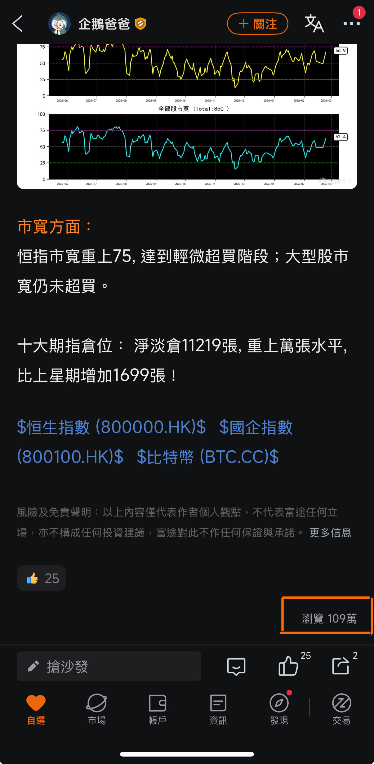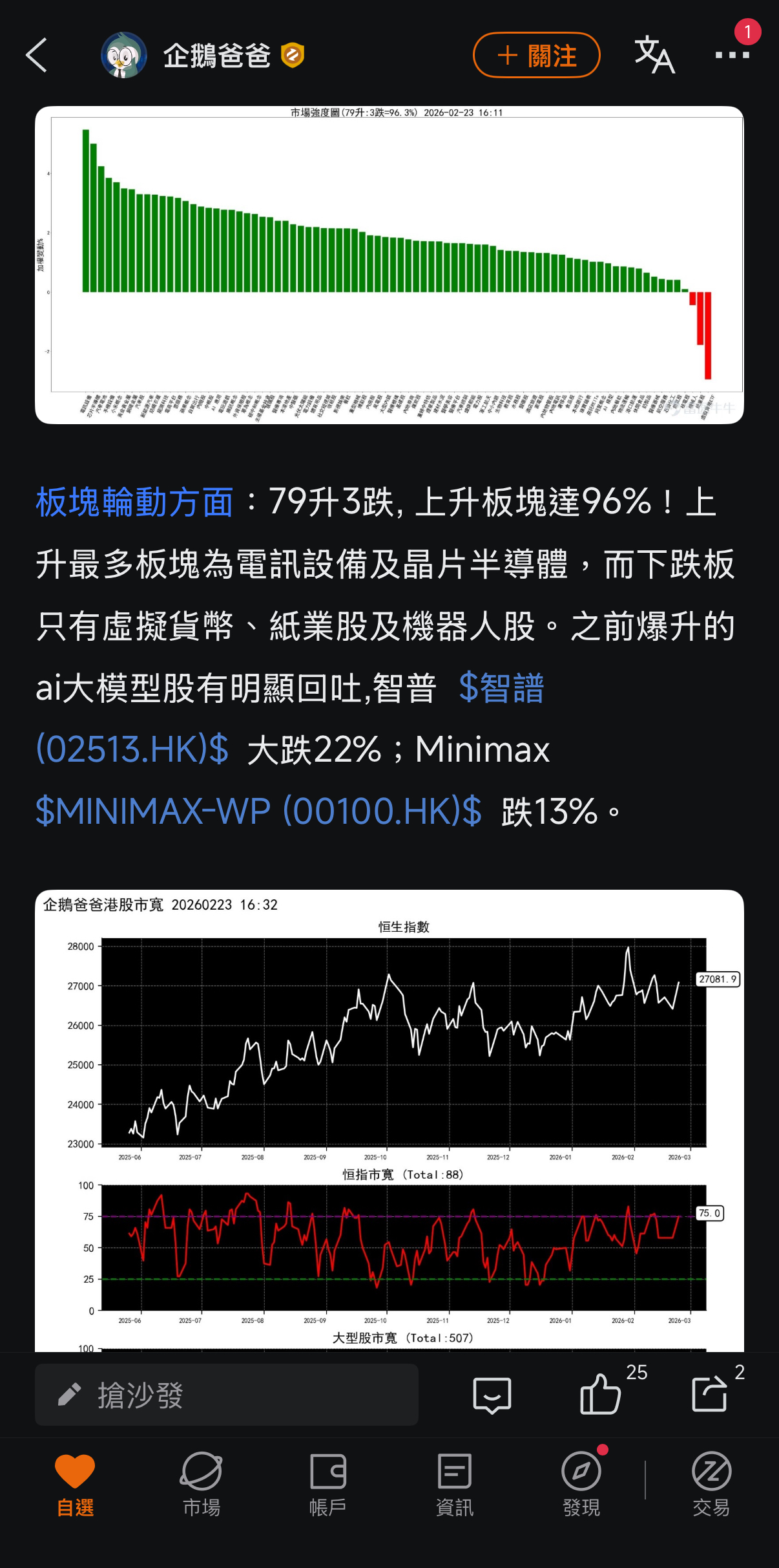 我做咗多年文職,依家係會計工作,成日同數字打交道,所以對投資一向都好謹慎。以前買股票多數只係睇價位同聽消息,成日唔知自己究竟博緊啲咩。上咗企鵝爸爸課程之後,我好鍾意佢用市寬圖去量化大市狀態,再配合選股器同嚴謹嘅風險管理。依家每次入市都有清晰數據同規則支持,回報同心情都穩定咗好多。